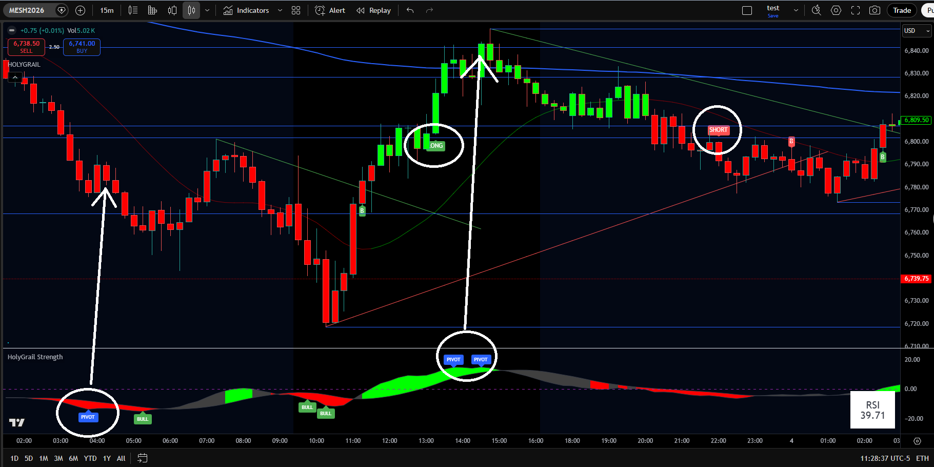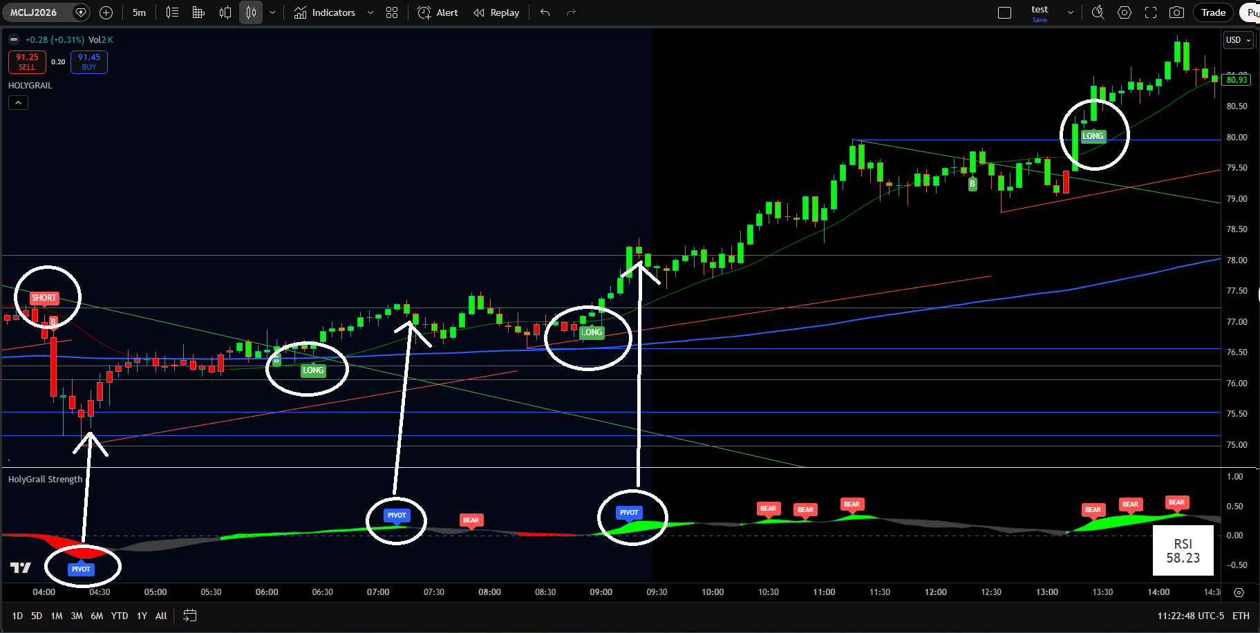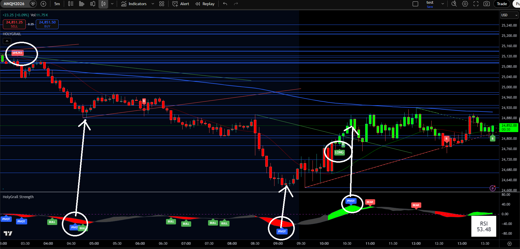Backtesting is included with the HolyGrail Algo. This feature reveals the historically optimal times of day to trade and helps with setting profit targets, stop-loss levels, and more.